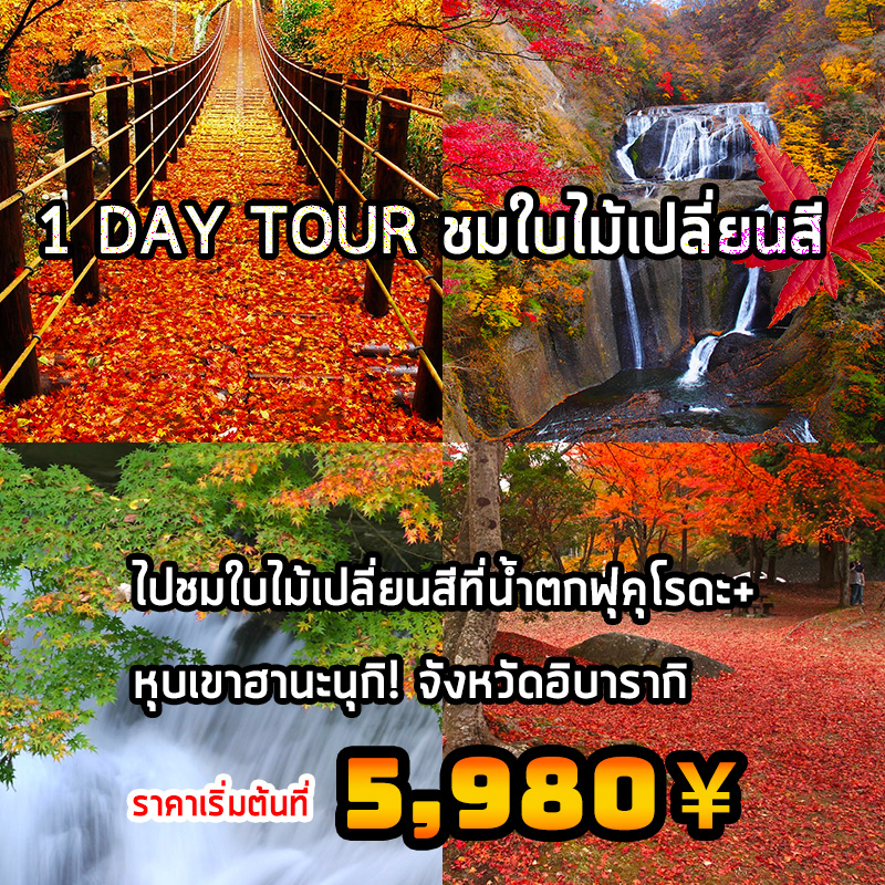 ทัวร์รถบัสไปเช้าเย็นกลับ ออกเดินทางจากชินจูกุไปอิบารากิ ชมใบไม้เปลี่ยนสี ที่น้ำตกฟุคุโรดะและหุบเขาฮานะนุกิ!
