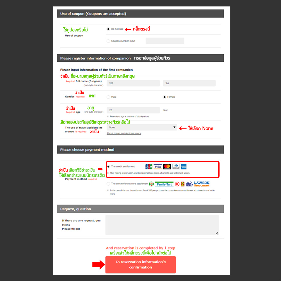 กรอกข้อมูลของผู้จองหรือคนที่เป็นหัวหน้าทัวร์ของกลุ่มที่ไปด้วยกัน