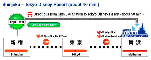 มาถึงส่วนของวิธีการเดินทางนั้นสามารถเดินทางได้ทั้งรถไฟหรือรสบัส โดยรถไฟนั้นให้นั่งมาลงที่สถานี Maihama ที่ตั้งอยู่บนสาย JR Keiyo และ JR Musashino ส่วนรสบัตรนั้นให้นั่งจากสถานีโตเกียวที่ทางออก Central Yaesu ป้ายหมายเลข 1 ใช้เวลาเพียง 15 นาทีเท่านั้น